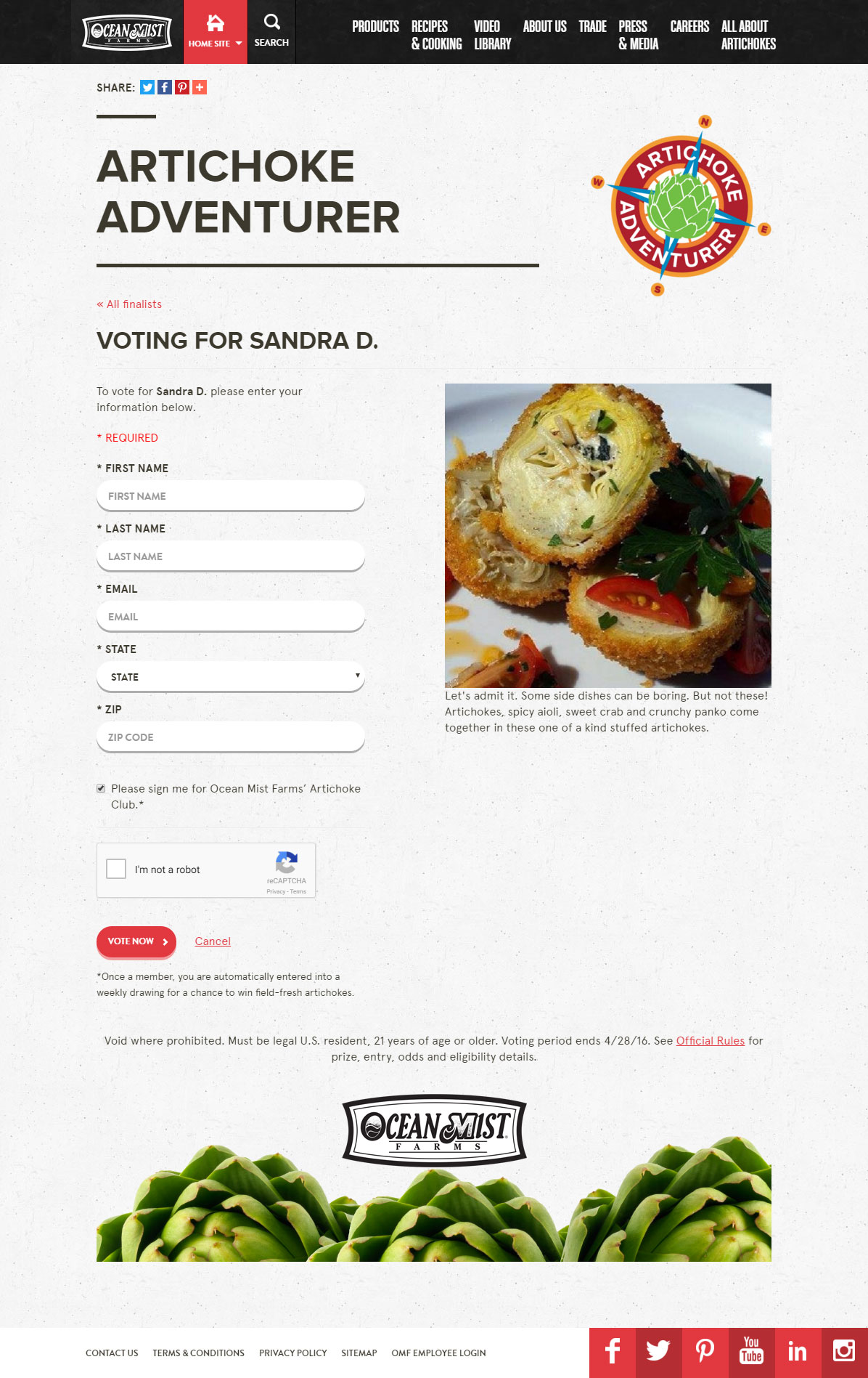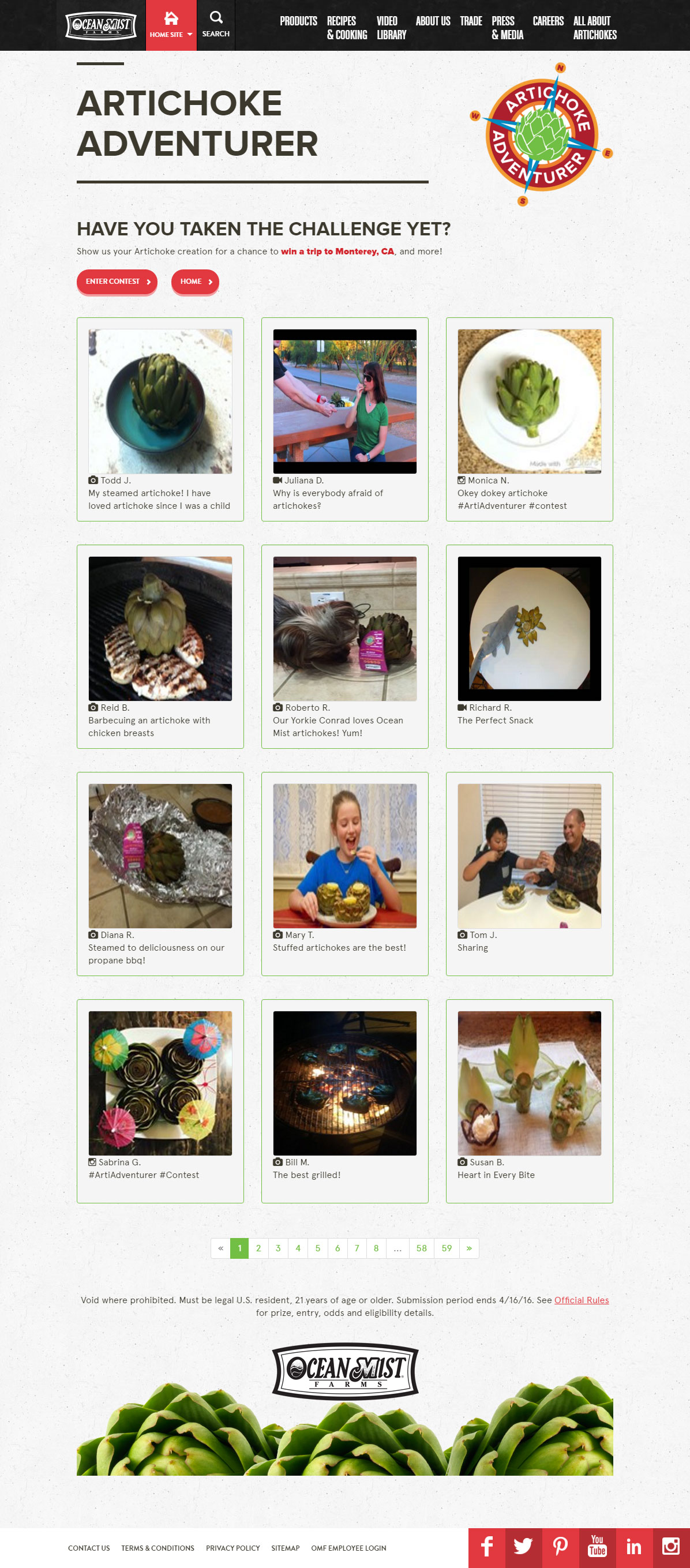 Consumers were invited to submit a photo or video of themselves preparing artichokes. Entries were judged on creativity, originality and use of artichokes. Exposure was tasked to create a fun and fresh website where entries could submitted and viewed by the public.